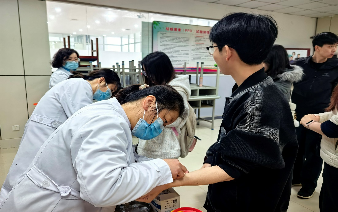 2026-03-23为切实保障学生身体健康,有效预防校园传染病传播,近日,我校组织在校大学生集中开展免费结核病专项筛查。本次筛查严格按照卫生防疫要求规范进行,主要内容:调查问卷、PPD、胸片。抽查对象为全校10%的学生,其中针对大二和大三的学生抽查15%-20%,全校共筛查约1000人。筛查过程中,学校分班级、分时段有序组织,医护人员认真开展检查,现场秩序井然。同时,工作人员向同学们普及结核病防治知识,讲解日常防护要点,引导大家提...