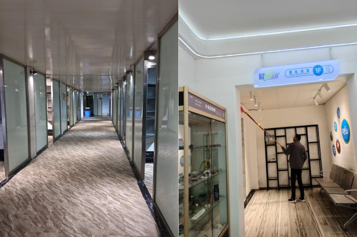 学生浴室全面开展了环境清理、设施检修与消毒通风工作。工作人员对淋浴设备、更衣柜、座椅等进行了逐一调试与清洁,确保水温适宜、水压稳定、环境整洁,让返校学子能洗去旅途疲惫,清爽开启新学期。